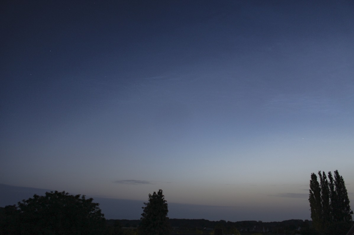 Sonnenstand zu diesem Zeitpunkt: -9,0°. Kurz darauf verblassten die NLCs und waren fotografisch nicht mehr nachzuweisen.