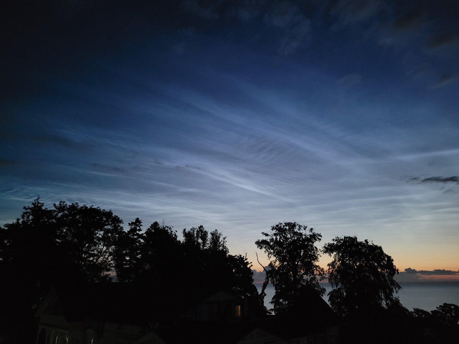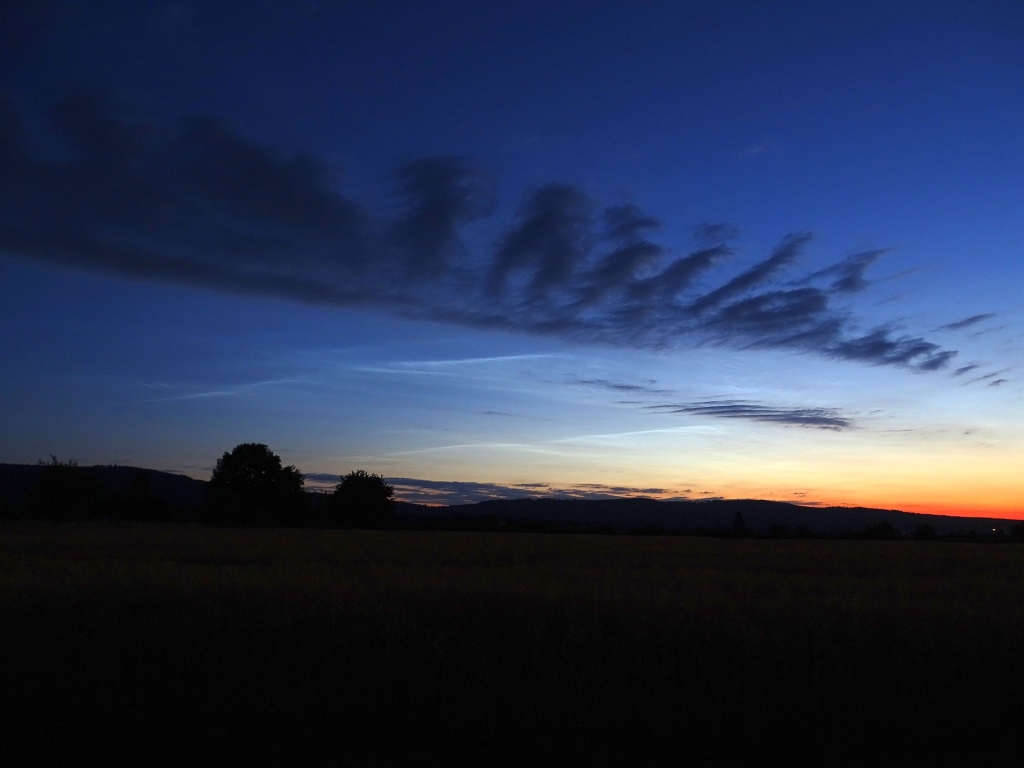 Nette Strukturen haben diesmal die NLC in rippenartiger Form hervorgebracht. Zeitweilig wurde aus meiner Sicht H4 erreicht. Der Standort ist AS A1 Bad Oldesloe und Poggensee