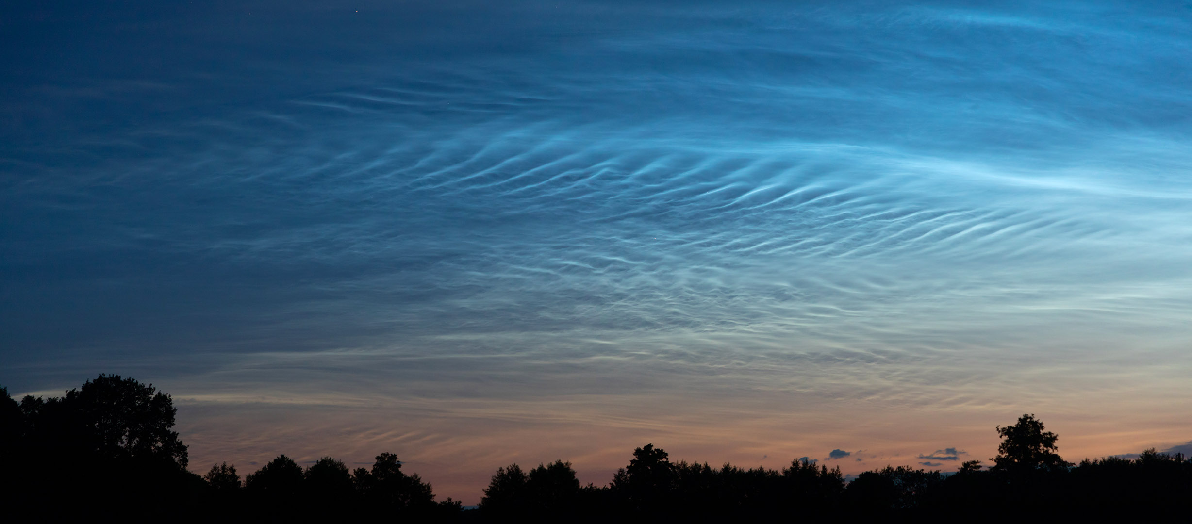 Während meine Dachkamera in Lübbecke das Allnight-Display einfangen konnte, musste ich das Ganze etwas weiter südlich überwiegend unter Wolken verbringen. Ein Sichtfenster im Morgensektor, rund um 03:00 MESZ, offenbarte einen Blick auf NLCs der Helligkeit max. 3, allerdings auch hier mit sehr eingetrübter und schlechter Durchsicht, bedingt durch einen Wolkenfilm. Der nachträgliche Check der automatischen Aufnahmen am Morgen danach, ließ mich dann noch einmal so richtig staunen. Formatfüllend und darüber hinaus, das muss großartig gewesen sein (, was eure Bilder hier einmal mehr unterstreichen):