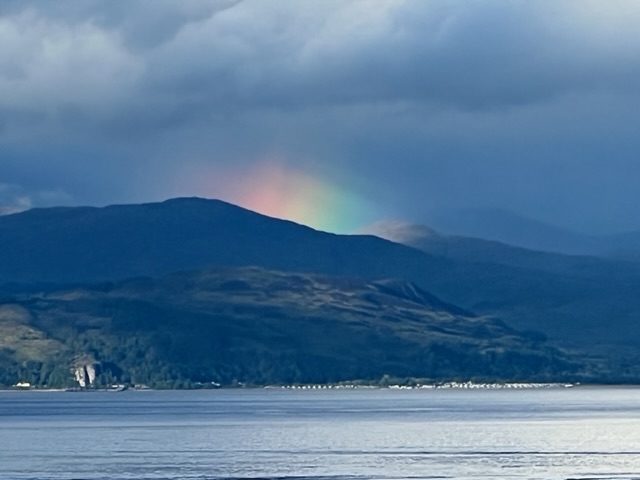 Am 30.05.2022 um 19:57 habe ich nahe Schottland/Isle of Mull auf einem Kreuzfahrtschiff am Horizont, direkt hinter einem kleinen Berg, den Anfang einen Regenbogen gesehen. So einen kurzen Regenbogen habe ich noch nie gesehen, weshalb es mich interessiert, ob hier ggf eine andere Erscheinung vorliegt. Blickrichtung müsste etwa Richtung Osten sehen, weshalb ein Regenbogen durchaus in Frage kommen sollte(?).