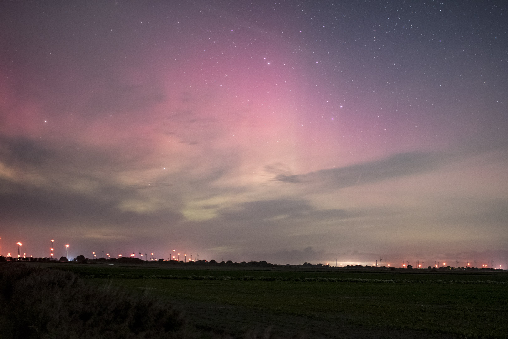 in Hamburg war es ziemlich bewölkt. Trotz der starken Lichtverschmutzung war das Polarlicht in Wolkenlücken problemlos zu fotografieren.