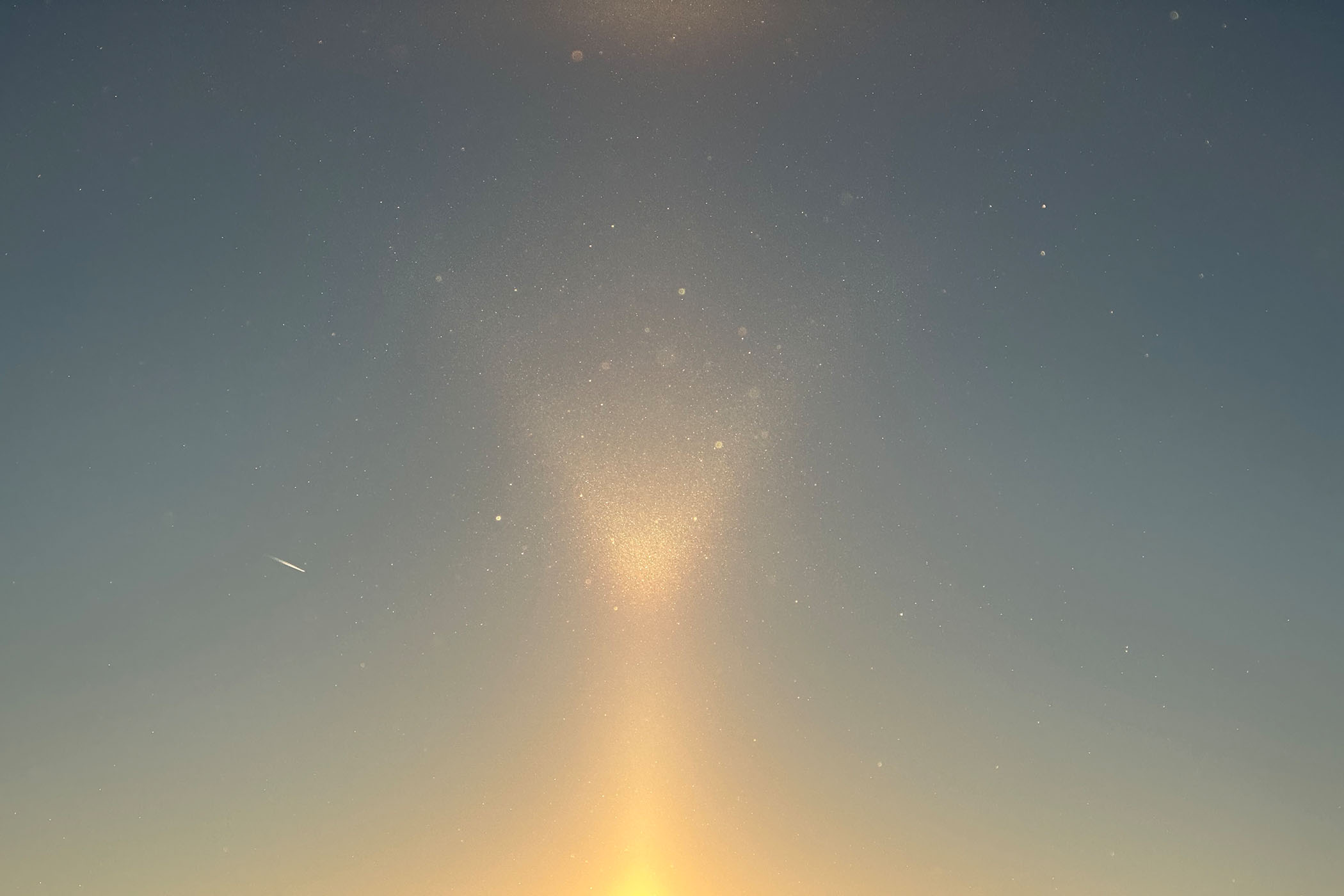 Zu sehen waren die obere und untere Lichtsäule, der Horizontalkreis und ein im 30-40°-Winkel verlaufender Bogen.