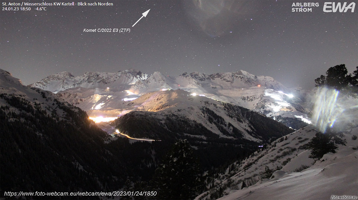 Danke für den Link - Und wie es aussieht, das Wochenende wird nicht besserKarl Kaiser hat geschrieben: ↑24. Jan 2023, 20:23 Heute habe ich versucht, den Kometen wenigstens auf Webcambildern zu finden, und siehe da, in St. Anton wurde ich tatsächlich fündig.