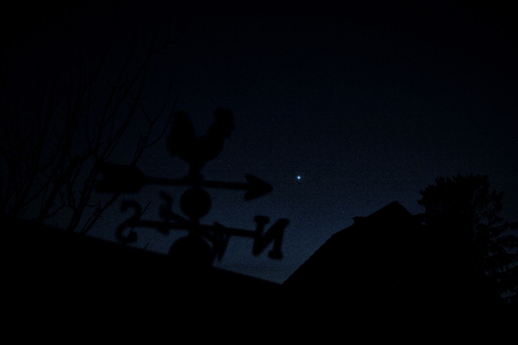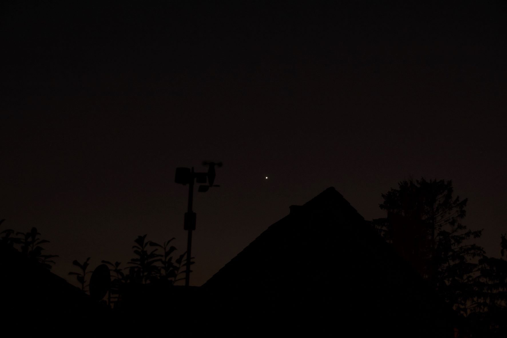zur blauen Stunde über dem Dach unseres Nachbarhauses aufgenommen.
