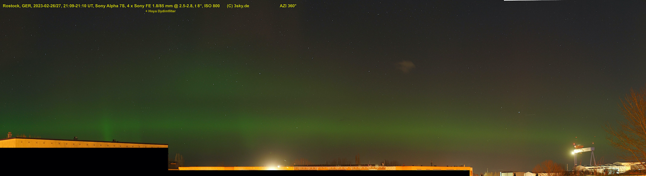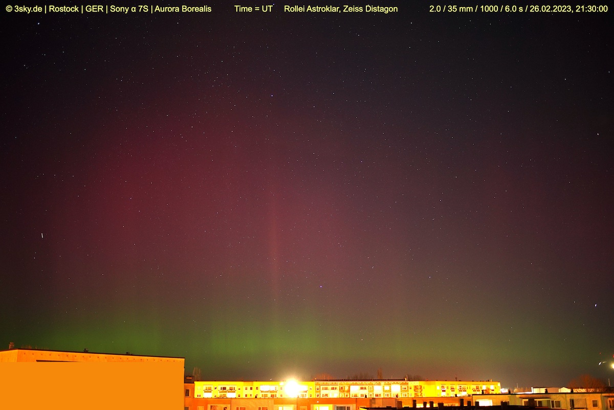 OlafS hat geschrieben: 26. Feb 2023, 21:49 Hier auch noch eine Sichtung aus Rostock. Zufallskontrolle gegen 22:10 MEZ und deutlich visueller (Doppel-)Bogen in grau. Kamera deutlich grün plus mehrfach Strahlen und deutlich nach oben hin noch diffuses Rot. Gruß, Olaf