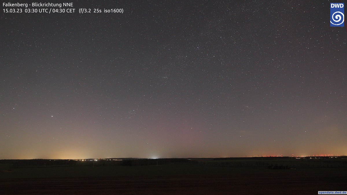Seit 21:00 MEZ (fotografisches) Polarlicht auf Webcams in Norddeutschland:
