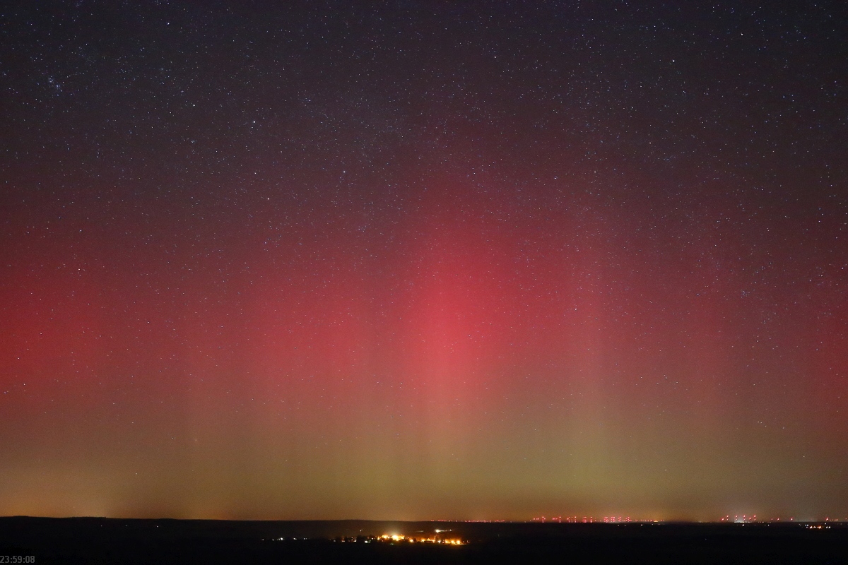 Weniger ideal ist die deutschlandweit höchste Dichte von WKA´s. Diese bis zu 200m hohen Anlagen haben am Turm mindestens 2, meistens 3 Ebenen mit rotem Warnlicht. Es gibt Orte an denen ich mehr als 300 Anlagen auf das Bild bekomme.