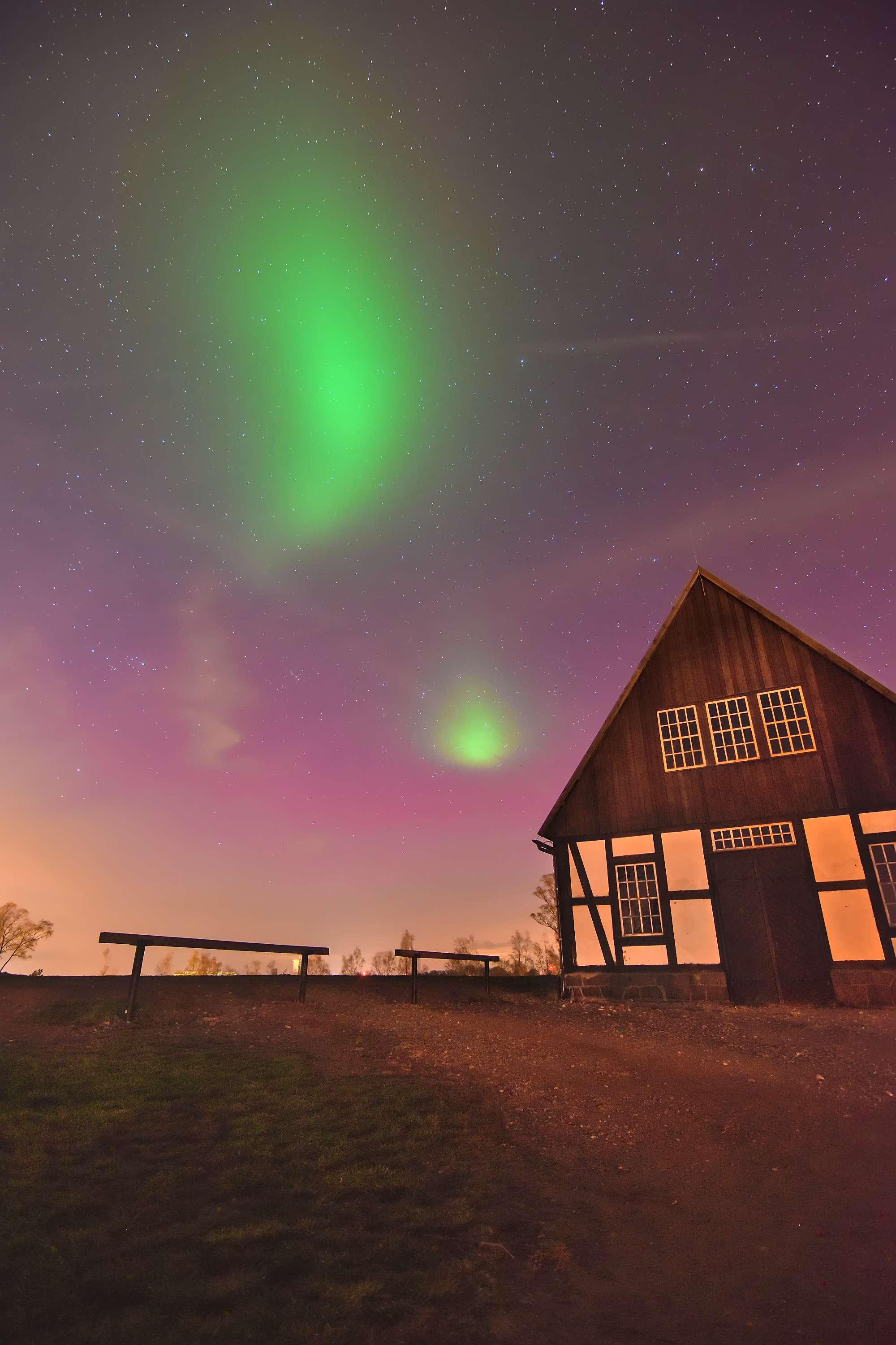 Absolut herrliche Aufnahmen! Leider war es bei uns (Augsburg, BY) sehr bewölkt und fast durchgehend grau, konnte dennoch eine leichte, aber erkennbare rot und grünliche Färbung des Himmels in einigen wenigen Wolkenlücken ausmachen (zwischen 22:30 und 22:45 Uhr Ortszeit). Durch die städtische Lage kann ich allerdings nur von der "fotografisch"en Kategorie sprechen.