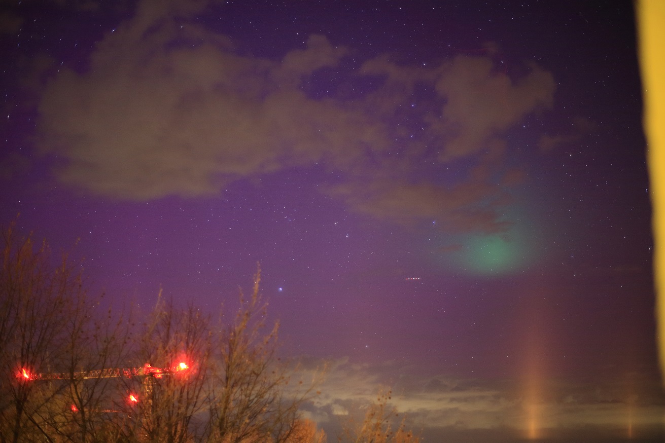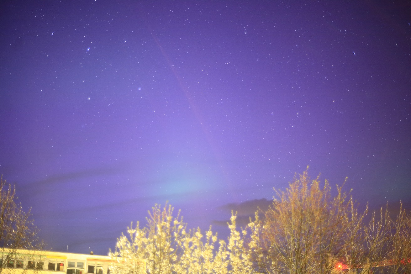 Visuell konnte ich wegen der Kombi aus Lichtverschmutzung und aufgehellten Wolken leider nichts eindeutig erkennen.