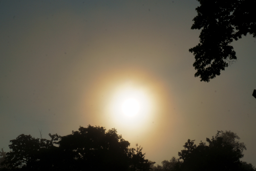Hier eine Nebelbank mit eventuellem sehr schwachen Nebelbogen? Oder doch nur eine Bank darüber? Schattenstrahlen im Nebel: Und ein Hof um die Sonne zeigte sich auch noch: Viele Grüße und noch ein schönes Wochenende