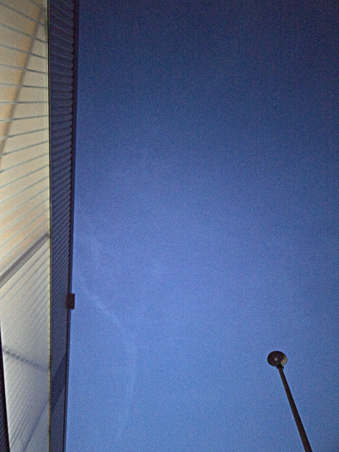 Ziemlich genau auf 0 Grad Nord (Höhe 5-10 Grad) werden aktuell weitere NLC-Strukturen „sichtbar“, deutlich ausgedehnter. (fotografisch)