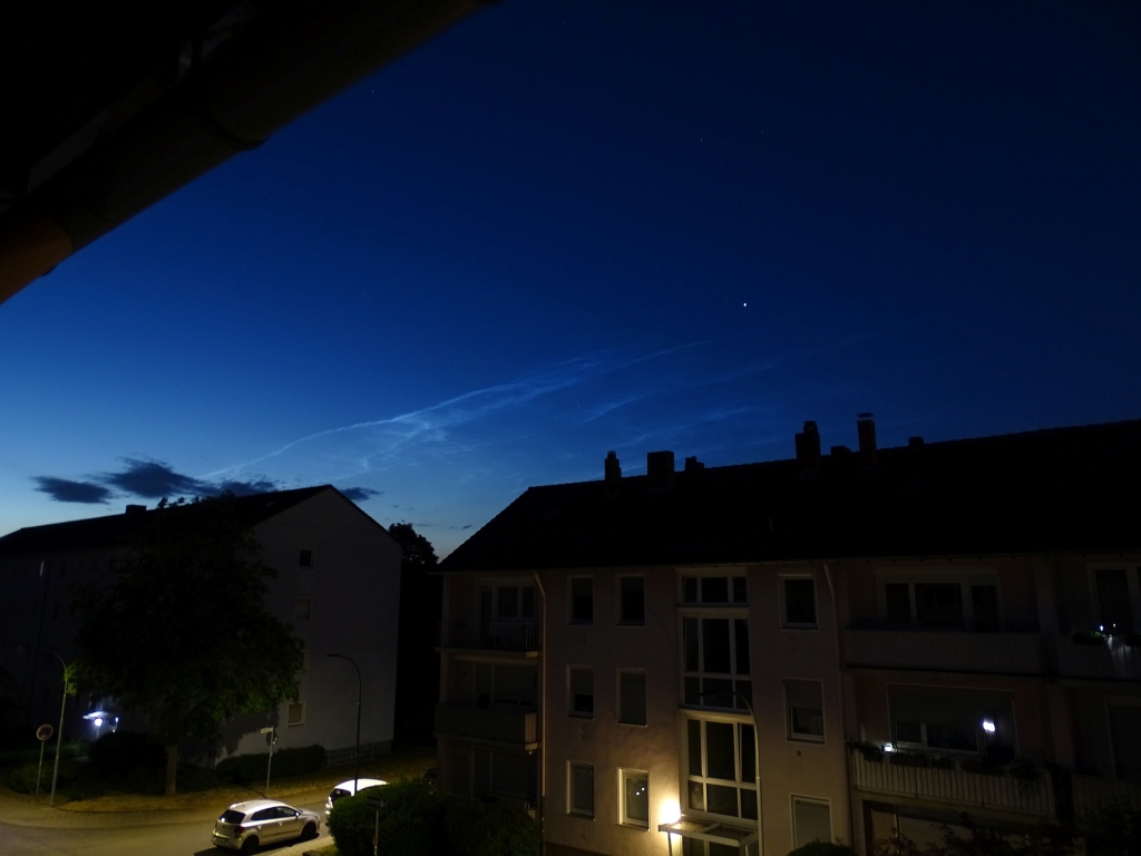 Hier meine Eindrücke von 23:42 MESZ, während die NLCs im NNW-Sektor zu beobachten waren: