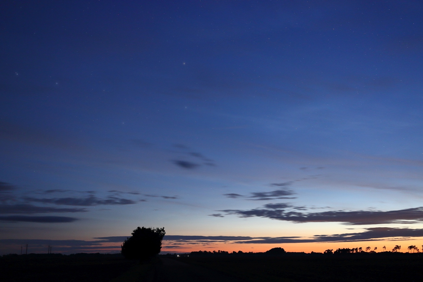 das dachte ich auch erst, doch um 3h MEZ ist der Horizont hier nicht so kontrastreich hell, deshalb war ich sehr verwundert. Und vor allem Nord Nordost - wenn, dann sollte das weiter rechts gegen Ost-Südost sein. Hm, bin nun ratlos. Der Himmel ist auf dem Foto auch viel zu hell abgebildet, weil die Händy-Camera im Nachtmodus lange belichtet. Das kann den Eindruck schon einsetzender Morgendämmerung vermitteln, aber das war nicht der Fall.