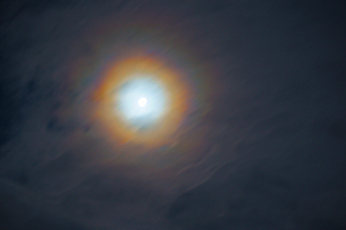Hier in Kirchhain gab es die letzten Nächte immer wieder Kränze um den Mond zu beobachten: