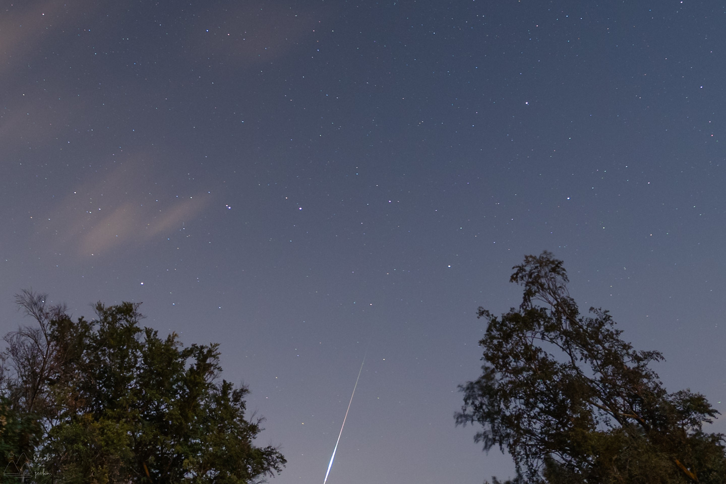 Hier hat sich ein Perseid in einer kleinen Wolkenlücke gezeigt. Spur leider nicht ganz vollständig.