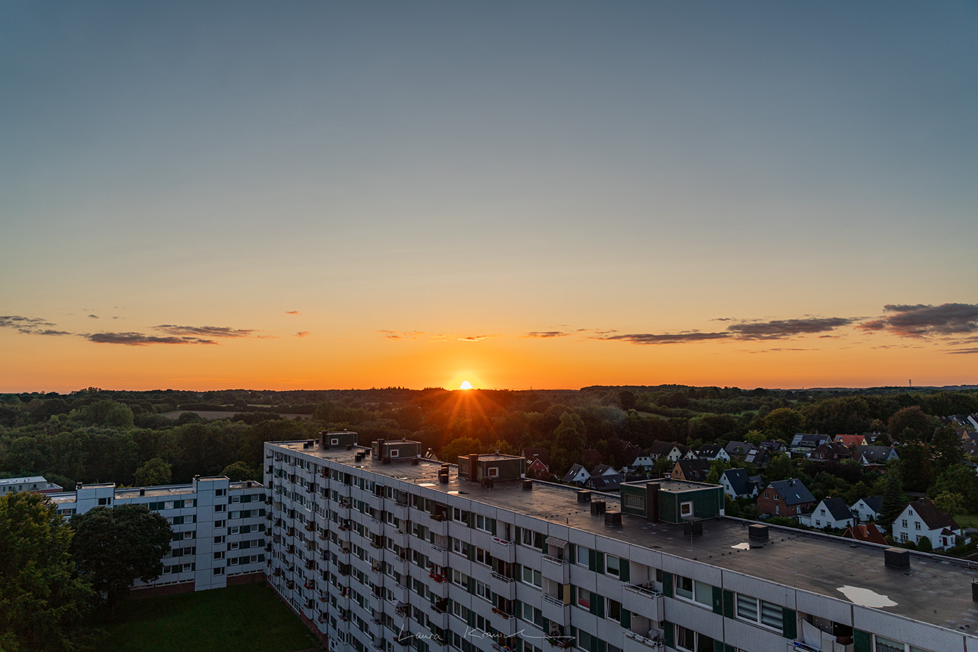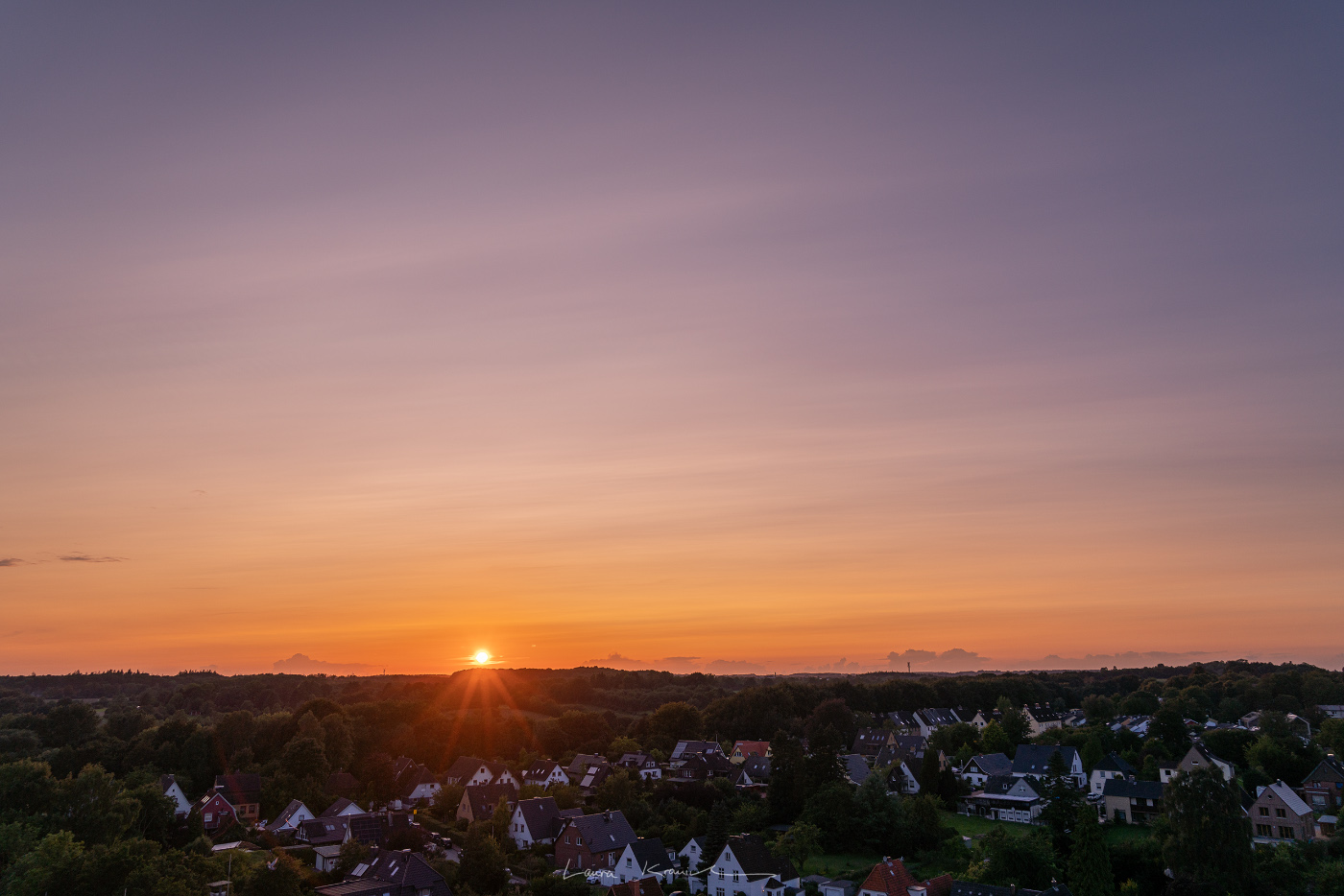 weißliche Schlieren über der Sonne kurz vor Sonnenuntergang, 13.09.23, Kiel