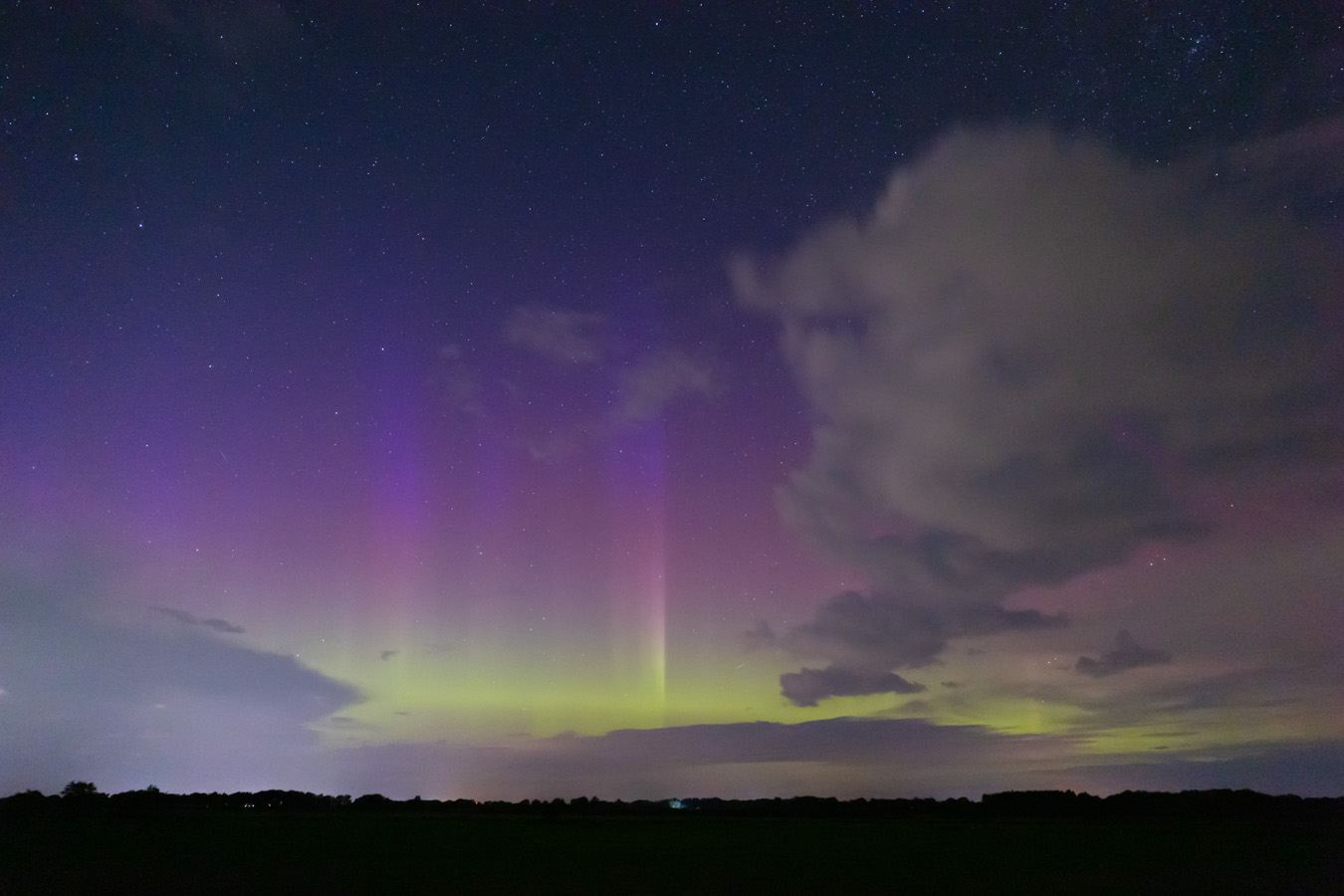 Das erste Mal, dass ich Wetterleuchten (links im Bild) und Nordlicht zusammen erwischt habe.