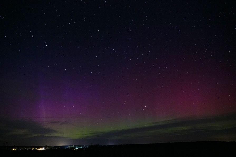 Hier, etwas östlich von Hannover, konnte ich gegen 21.40 Uhr MESZ ebenfalls schwaches Polarlicht fotografieren. Sehen konnte ich es nicht.