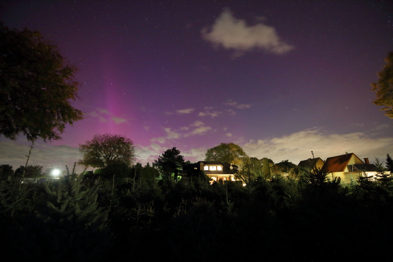Volltreffer an der privaten Wetterstation Süderlügum (54° 52´19″ N/8° 54´45″ O),sehr deutliches fotografisches Polarlicht !
