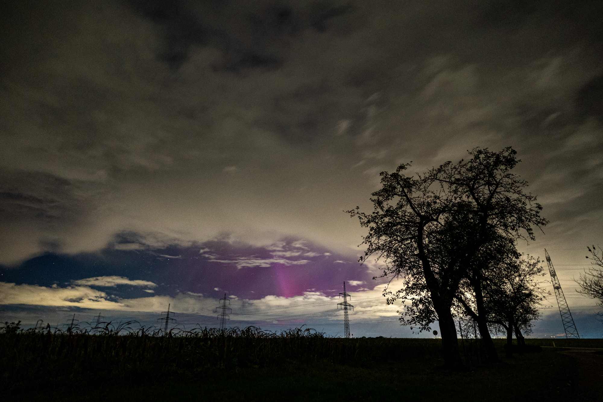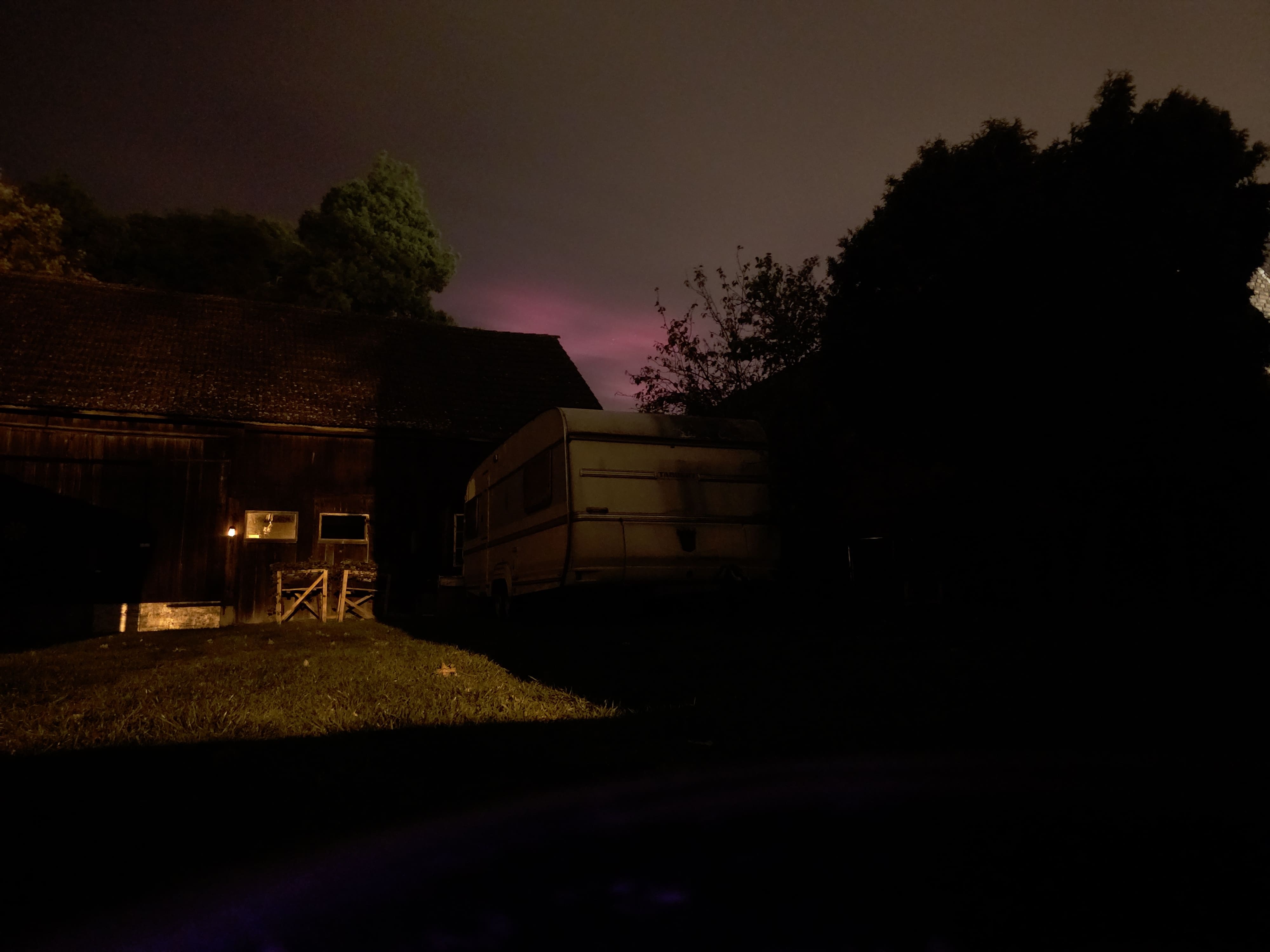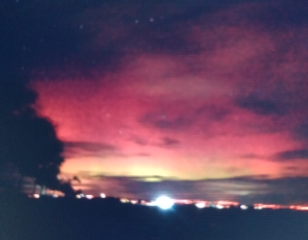 Hellrotes Polarlicht am frühen Abend in 03185,Drehnow gesichtet. Schlechte Sicht aufgrund der Wolken aber die Kamera hat es trotzdem erfasst.