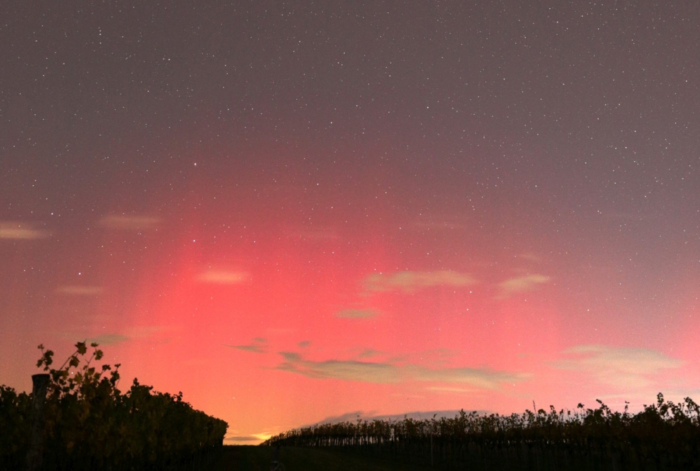 Kommentar: schwaches rotes Glimmen im Norden, zu dem SAR-Bogen