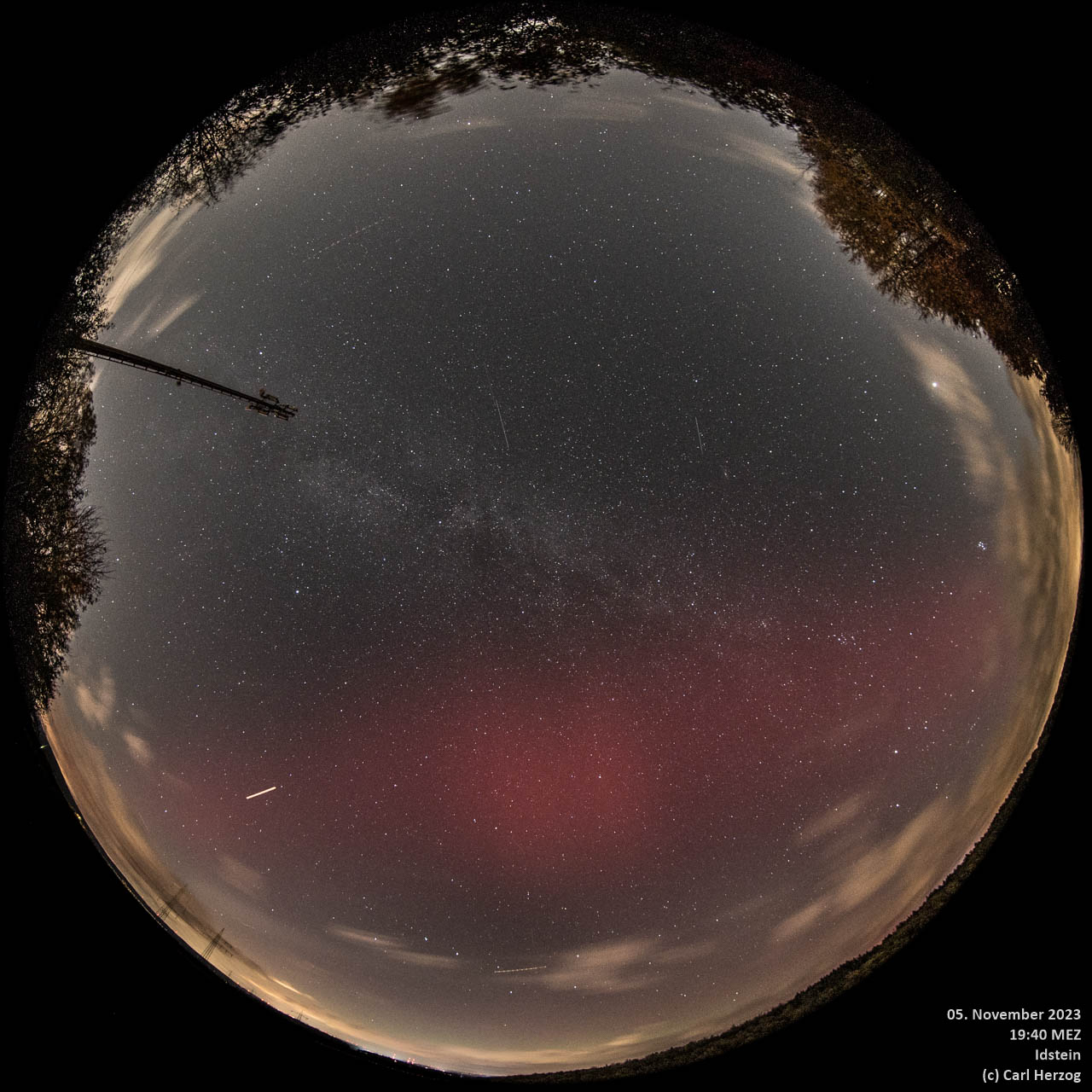 das ist ja witzig und erfreulich, dass meine Allsky-Kamera auch außerhalb von Idstein nutzvolle Verwendung findet. Ich hab die Polarlichter tatsächlich auch erst durch die Live-Ansicht auf meiner Wetterseite bemerkt. Die gingen so hoch, dass die 5° bis 7° des - durch Häuserreihen - geblockten Nordhorizonts keine Rolle spielten (ich wohne in einer Hanglage, nach Norden aufsteigend).