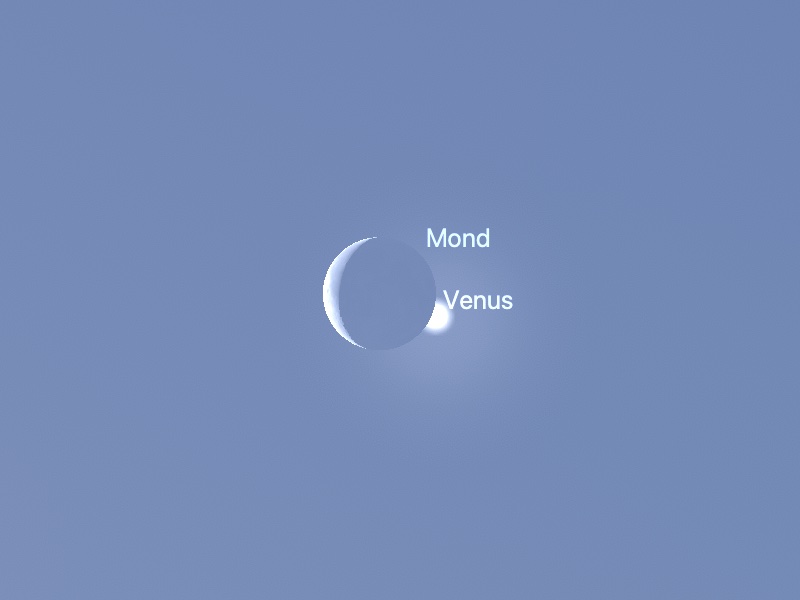 Und so wandert der Mond an der Venus vorbei (nach stellarium, Ort: Heidelberg)