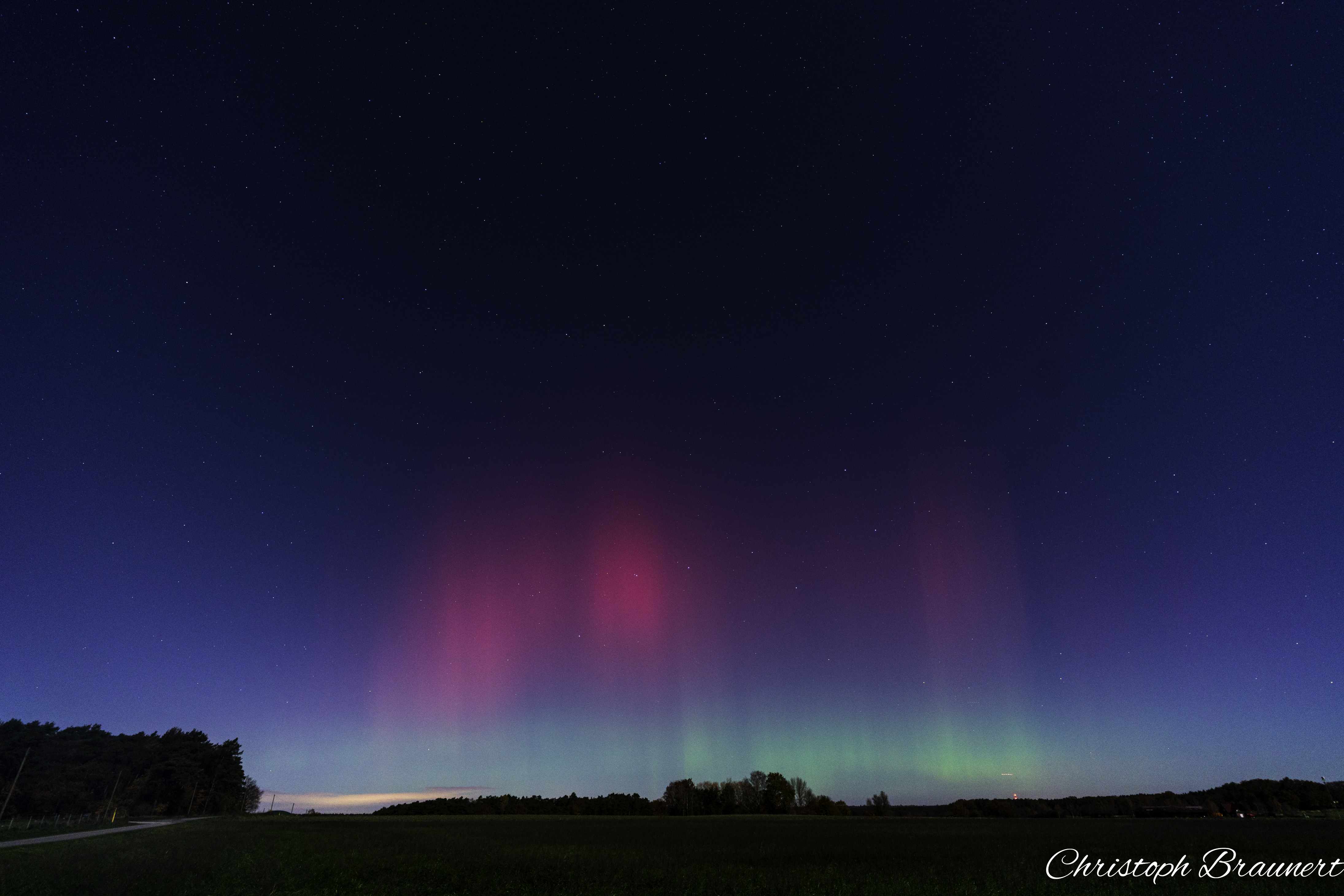 Dies war auch das erste Mal das ich hier in Deutschland, Polarlicht mit dem Auge sehen konnte . Der ganze Himmel wurde aufeinmal Rot und die Beamer stiegen in den Himmel .