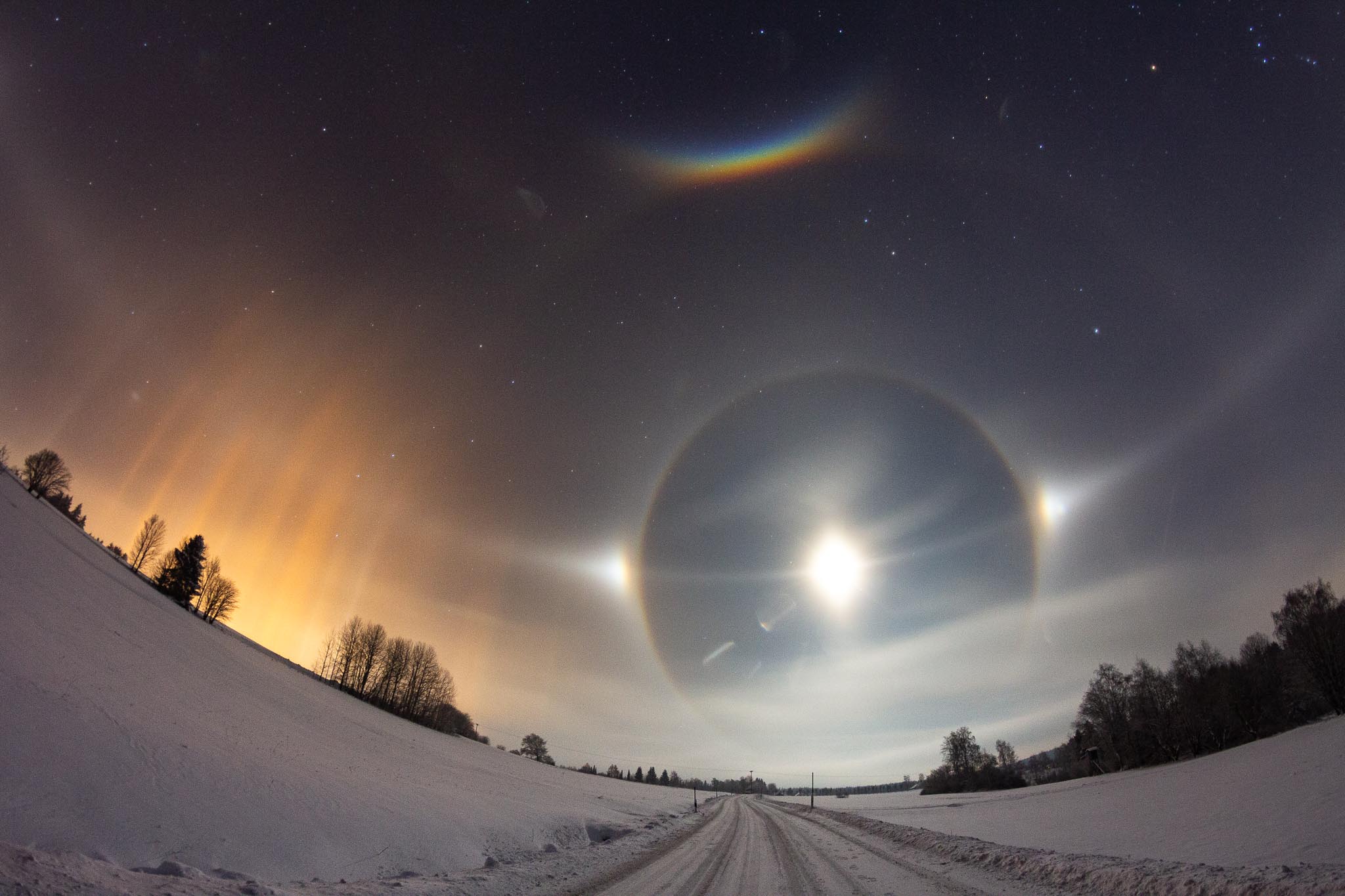 Mir gefällt u.a. auch der homogene Nebensonnenkreis mit den Wintersternen und Lampenlichtsäulen (bräuchtest nur noch ein Vollkreis-Fisheye).