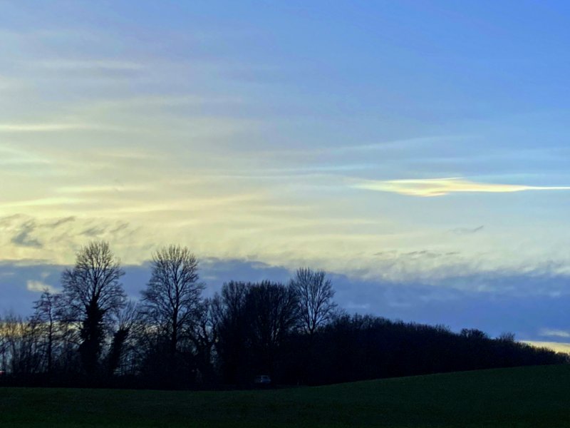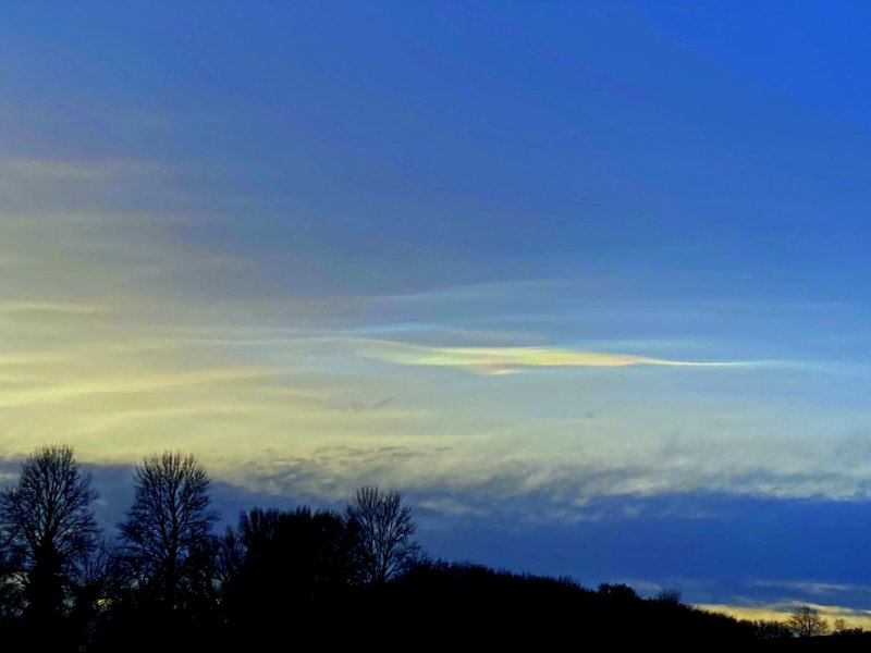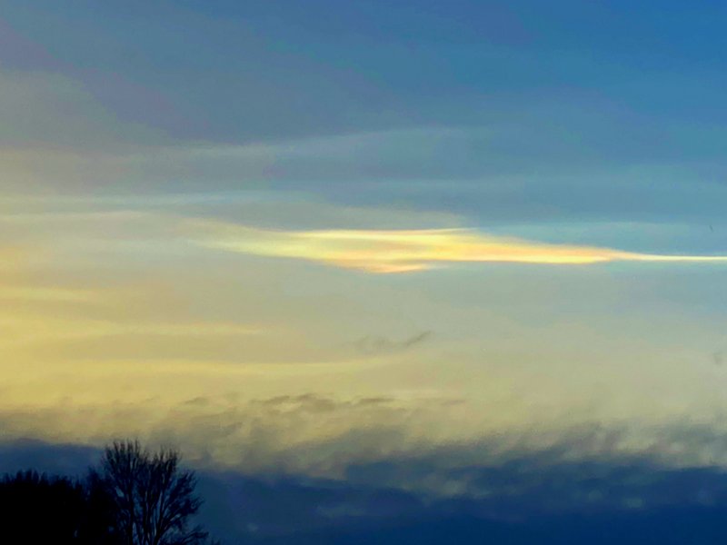 Leider hatte ich keine Kamera mit und konnte spontan nur einige Bilder mit einem alten iphone machen. Die Qualität ist leider mässig, reicht aber, um einen Eindruck zu vermitteln. Insbesondere die "Perlmutterwolke" hob sich in der Helligkeit deutlich ab. Das Irisieren war visuell auch deutlicher, als es auf den Bildern 'rauskommt.