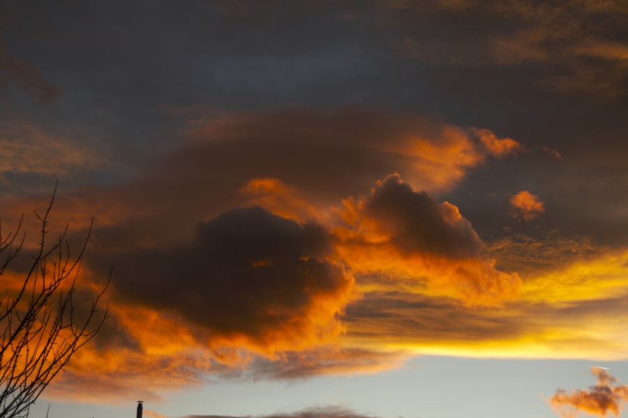 Ein episches Wolkenscenario in straffer westlicher Strömung zeigte sich bei Sonnenuntergang am 03.01. 24. Wir hatten ein Tagesmaximum von 14 Grad und Westwind mit Böen über 65 Km/h.
