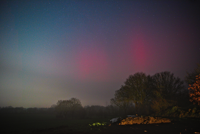 Während der Beobachtung nahe der Ortschaft Kisdorfer Wohld wurde die Sichtung so stark durch Dunst gestört, das nur meine Kamera die Aurora aufzeichnen konnte.....