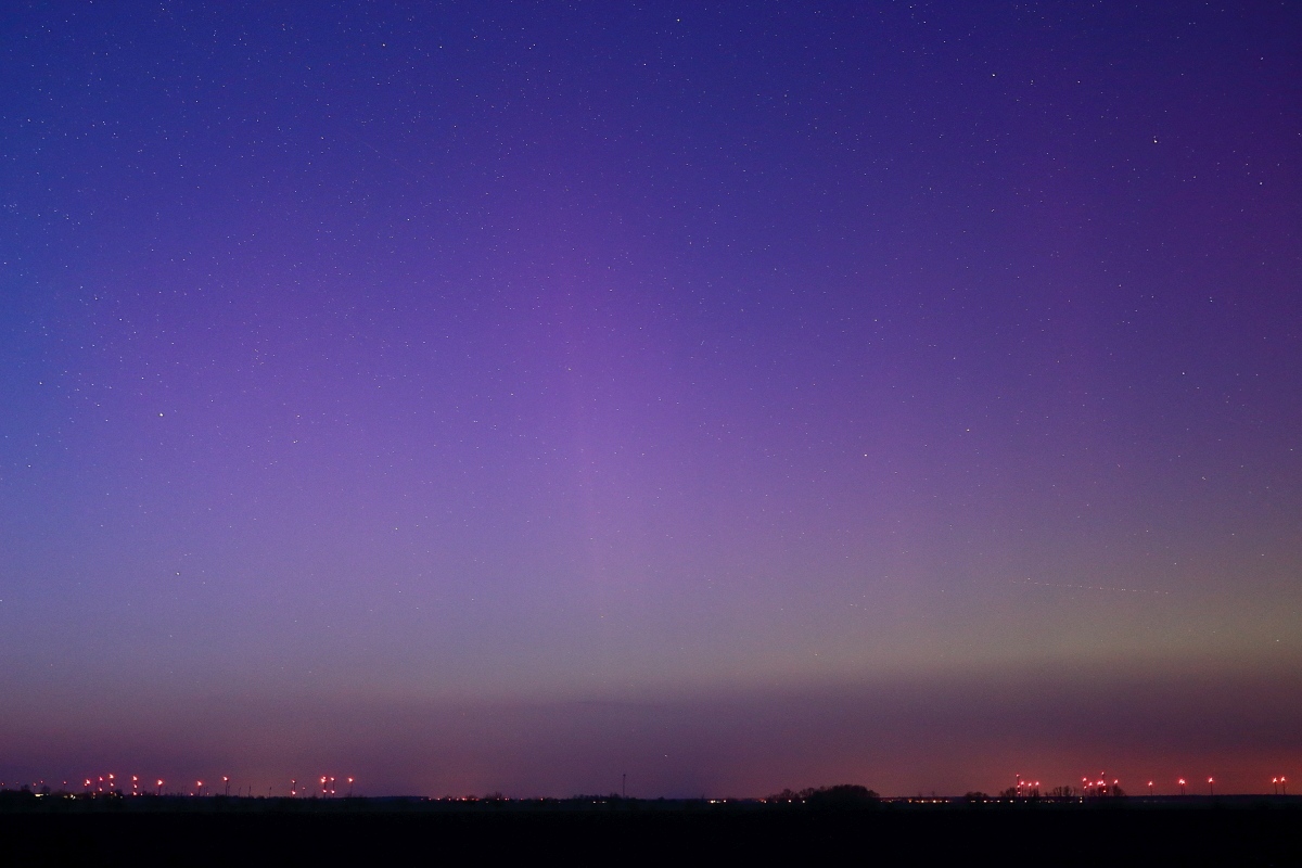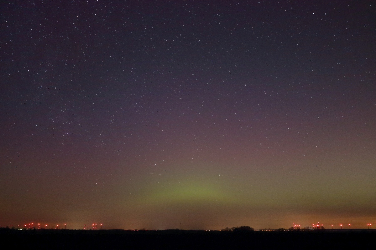 schön, dass doch einige Erfolg hatten in der Nacht. Ich war mal wieder in der Nähe von Talkau bei wirklich miesen Bedingungen. Immerhin zeitweise wolkenfrei. Aber extrem dunstig und dadurch die Lichtverschmutzung extrem störend. Vor allem Mölln, das nicht weit ostnordöstlich meines Standorts lag. Zudem lagen horizontnah im Norden Wolkenfelder, sodass von dem grünen Bogen bei mir fast nichts zu sehen war.