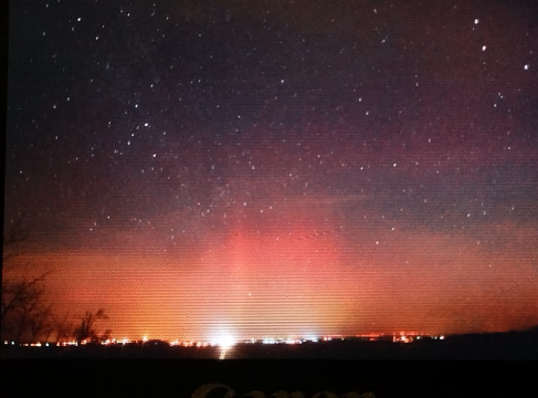Auch von Riesa aus waren schwach visuelle PL Aktivitäten zu beobachten. Beamer, der grüne Bogen (nur fotografisch grün vom Standort aus) und der SAR waren erkennbar. Auf den Bildern fiel uns der SAR plötzlich auf und war deutlich erkennbar weil zwischen dem Horizont und dem Zenit eine dunkle Zone erkennbar war. Durchweg hatten wir das Gefühl einen Rotton am Himmel zu sehen und waren uns jenseits der Fotos nicht sicher.