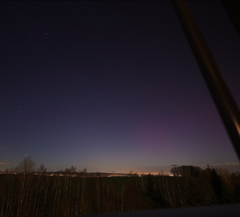 Fotografisches Polarlicht aus Chemnitz vom Balkon. Gegen 21.37 Mez