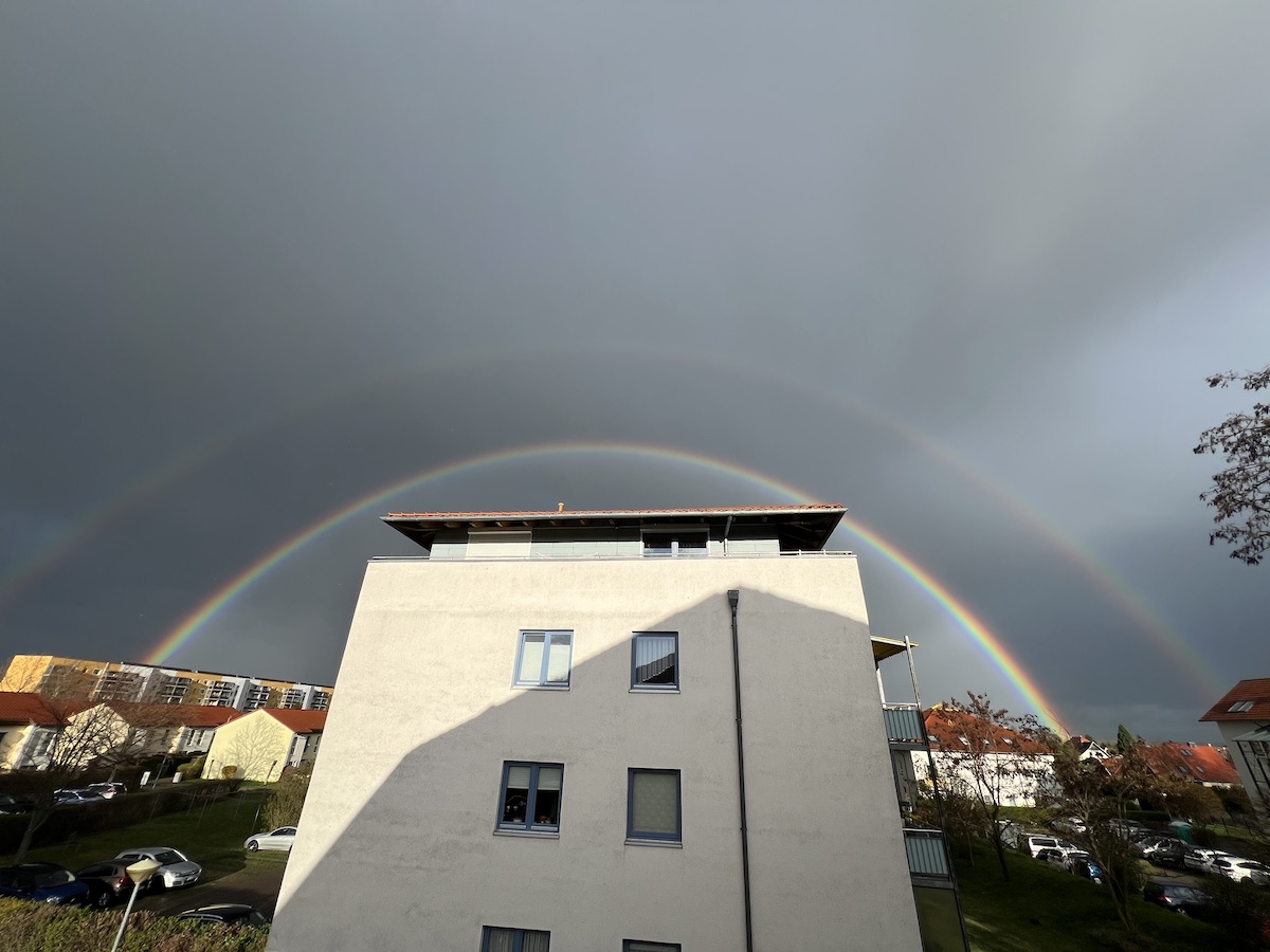 Hallo Michael,Michael Theusner hat geschrieben: ↑12. Apr 2024, 07:41Hallo,Marcel Becker hat geschrieben: ↑5. Apr 2024, 14:31 Heute Nachmittag (5. April) konnte ich während eines Schauers einen eigenartigen, flachen Regenbogen aufnehmen. Sah aus, als wären da zwei Regenbögen, nur mit geringem Abstand und der selben Farbreihenfolge: