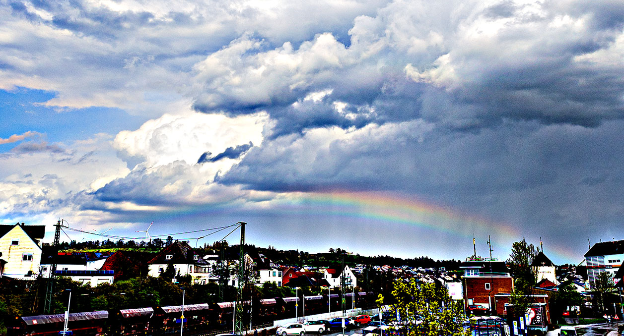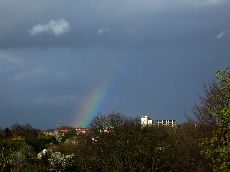 Ich starte mal den monatlichen Thread mit typischen April-Wetter und zwei Fragmenten eines Regenbogens am 2. April: