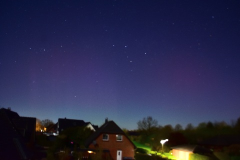 An der privaten Wetterstation Süderlügum (54° 52´19″ N/8° 54´45″ O) wurde am 19.04.2024 in der Zeit von 23.30 - 00.00 Uhr ein fotografisches Polarlicht aufgezeichnet.