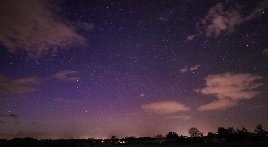 Gerade mit dem Handy aufgenommen, der Himmel hat sich hier bei Dresden ins violette verfärbt. Die Diffuse Leuchterscheinung konnte ich auch festhalten: Ich bitte um Aufklärung, ob sich es hier um ein Polarlicht handelt. Die Bilder sind zudem unbearbeitet. In Blickrichtung Norden ist auch keine Größere Stadt zu sehen...(Lichtverschmutzung)