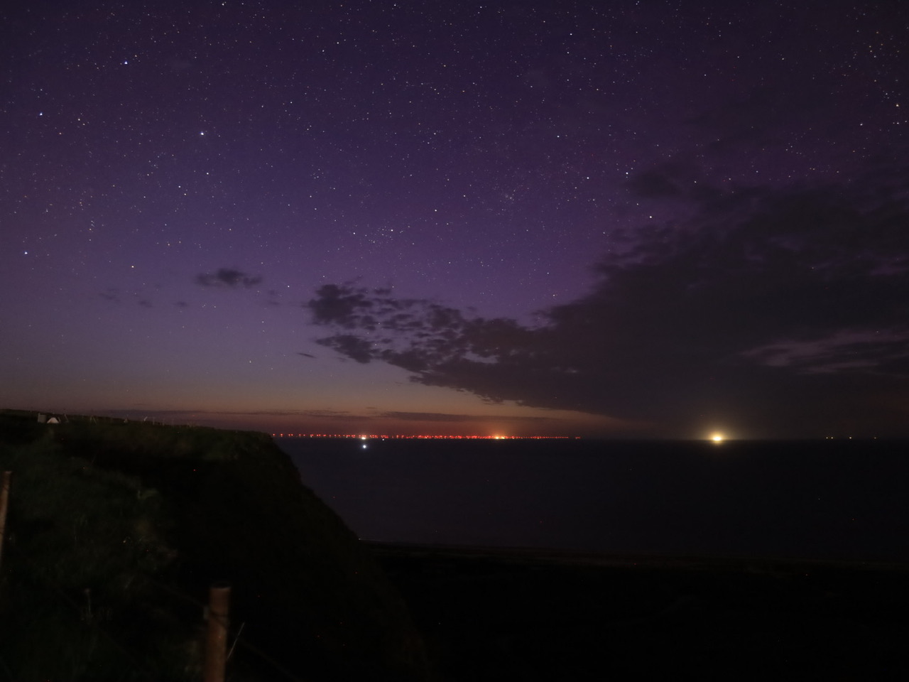 Die Werte waren vielversprechend. Doch ich hatte im letzten Jahr schon Besseres gesehen. Immerhin verzogen sich die Wolken noch rechtzeitig, um ein schwaches diffuses Leuchten am Nordhimmel visuell wahrzunehmen. Fotografisch zeigte sich ein violettes Licht hinter den Wolken.