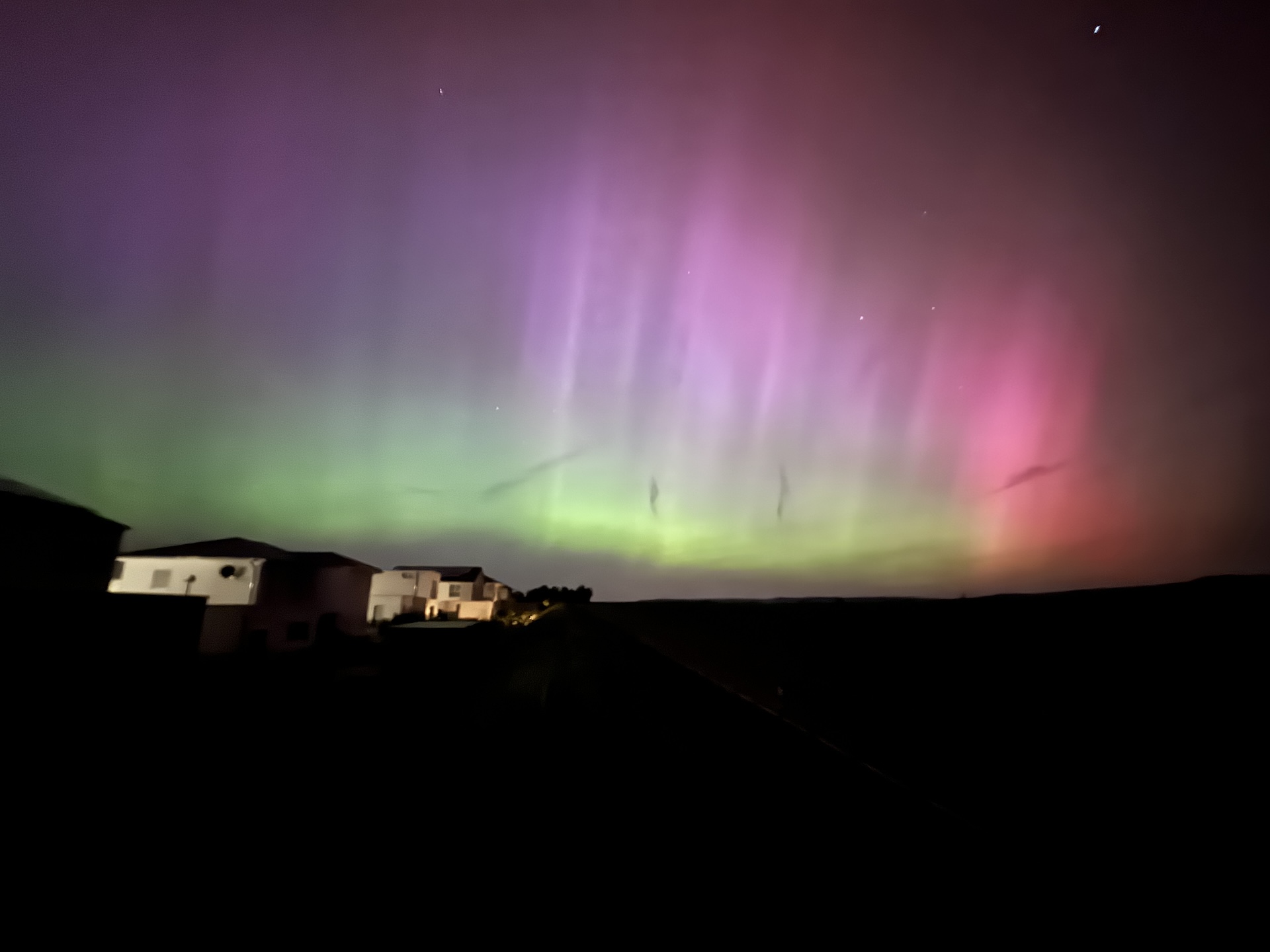 Einer der krassesten Erlebnisse in meinem Leben. Durchgängig visuell sehr hell zu sehen. Grüne Farbe, rote Beamer ragten bis in den Zenit. RAGDA sogar auf der Südseite des Himmels außerhalb von Dresden. Erste starke Aktivität bereits während der Dämmerung. Gegen Mitternacht erneute starker Schub mit intensiven Strukturen! Aktuell 1:50 Uhr MESZ mit auffälligen grünen Bogen über dem Horizont. Aktivität hat sich aktuell etwas beruhigt. Mal schauen, was noch kommt. Viele Grüße aus Dresden