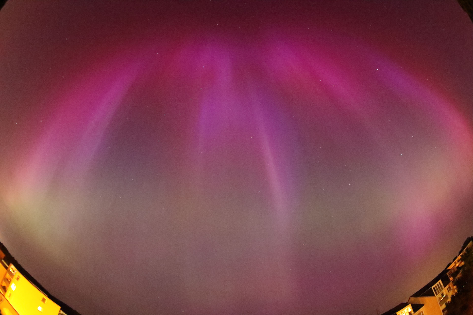 Von Ost über Nord nach West wurden sich im Zenit zentrierende Strahlen deutlich sichtbar. Der Ausdehnung nach liegt meine Einschätzung bei einem