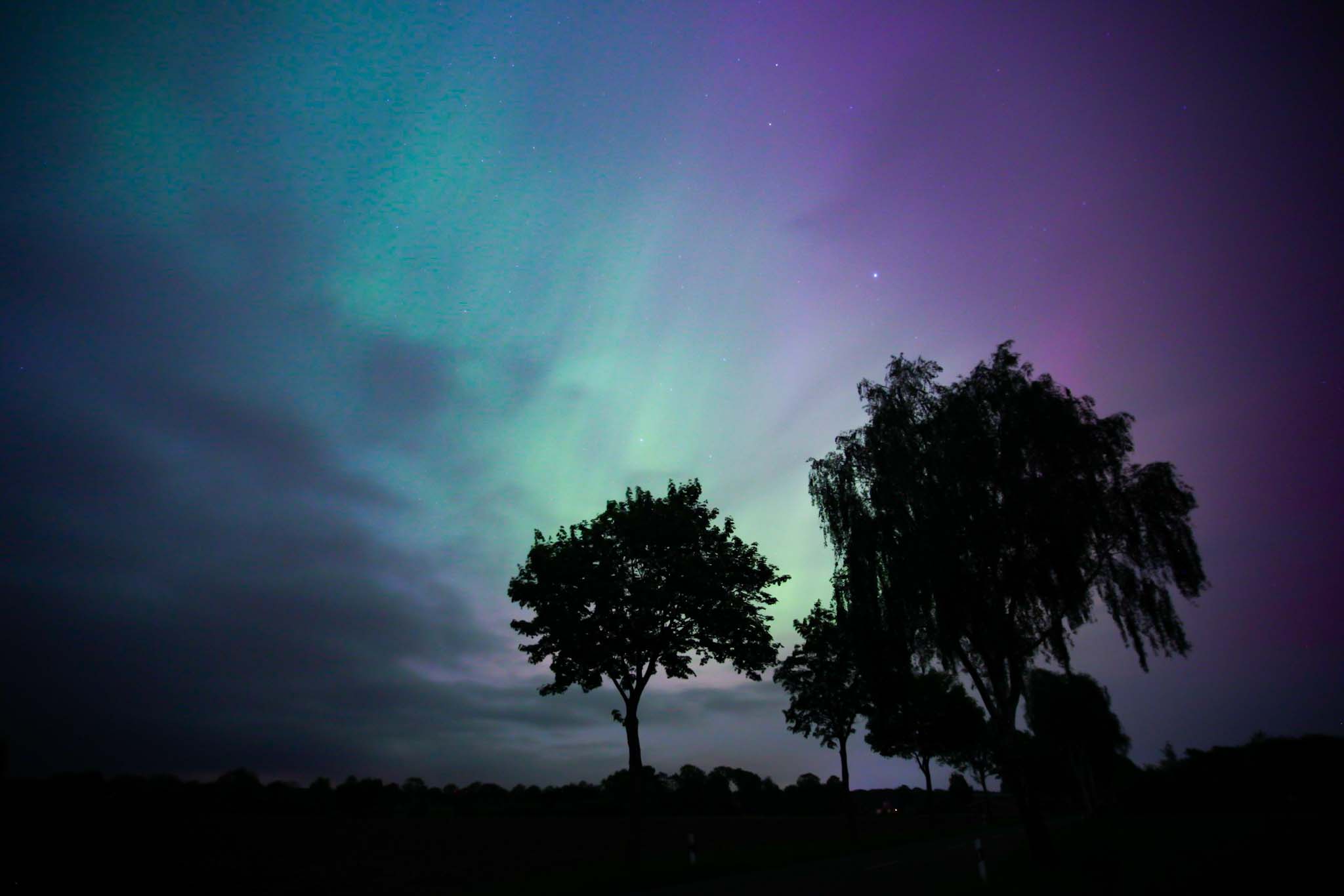 Trotz der Lichtverschmutzung in der Stadt konnte ich von ca. 22:15 bis 22:35 Uhr deutlich visuell ein Polarlicht erkennen. Aber auch noch mehrere Stunden später war mit der Kamera immernoch etwas rot bis violett/grün zu erkennen.