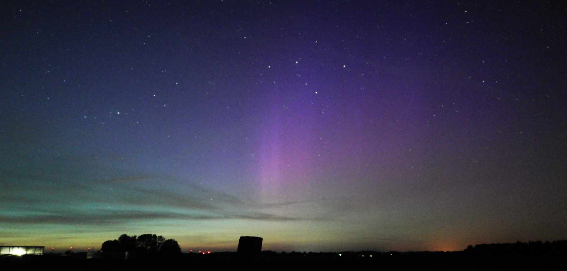 Buchholz gerade gegen 22:49 MESZ ein einzelner violetter Strahl in Richtung NordNordwest und im gesamten nördlichen Hintergrund violettes Glühen als Restaktivität des Tages. Alles nur fotografisch.