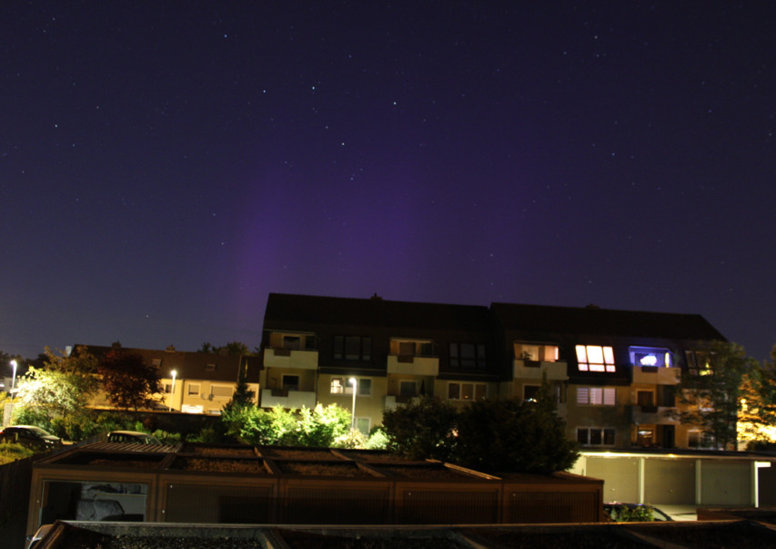 Hallo, auch in Geisenfeld, Lkr. Pfaffenhofen (Bayern) konnte man von ca. 22.45 Uhr bis ca. 23.15 Uhr das Polarlicht, welches visuell nicht sichtbar war, fotografisch festhalten.