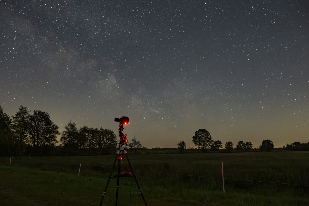 Mit dem Verblassen dieser Strahlenaktivität in der Dämmerung, kümmerte ich mich um den Aufbau meiner Nachführung, um im Laufe der nächsten Stunden das aufgehende galaktische Zentrum zu fotografieren. Ein Beobachtungsziel, welches ich die vergangenen drei Jahre nicht mehr ins Auge fassen konnte - heute schien der perfekte Moment.