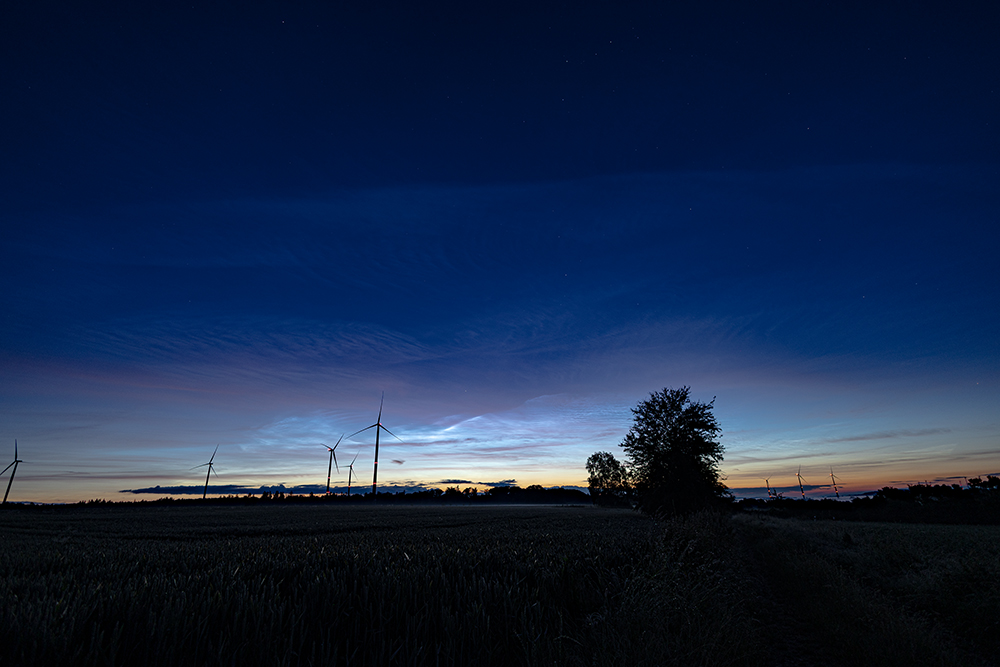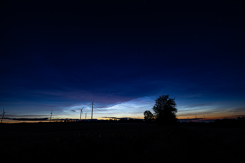 Bei Quernheim (Kirchlengern) noch kein Hauch von NLCs. Derweil hat die Sonne eine Höhe von knapp -10 Grad. Gerade ist der Himmel recht klar.