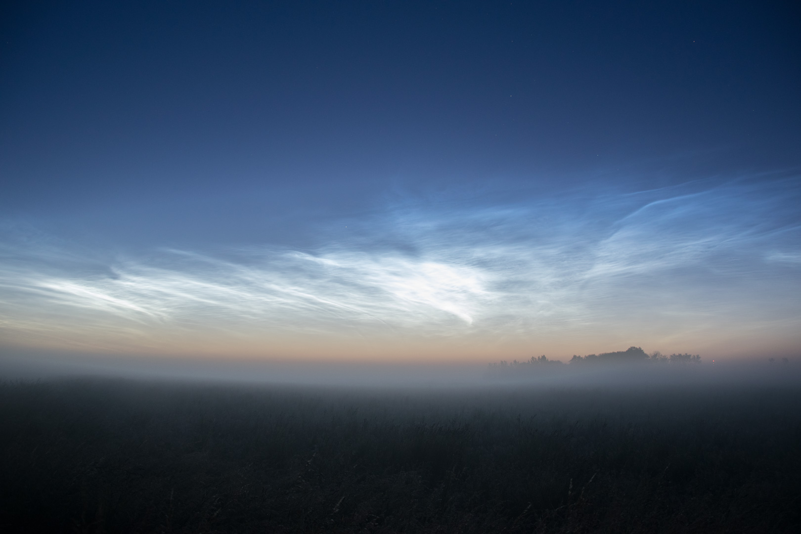 … ja, und in diesem Moment treten die NLCs aus den Tiefen des östlichen Teils des Dämmerungsbogens hervor. Derzeit H1, Höhe ca. 5 Grad.