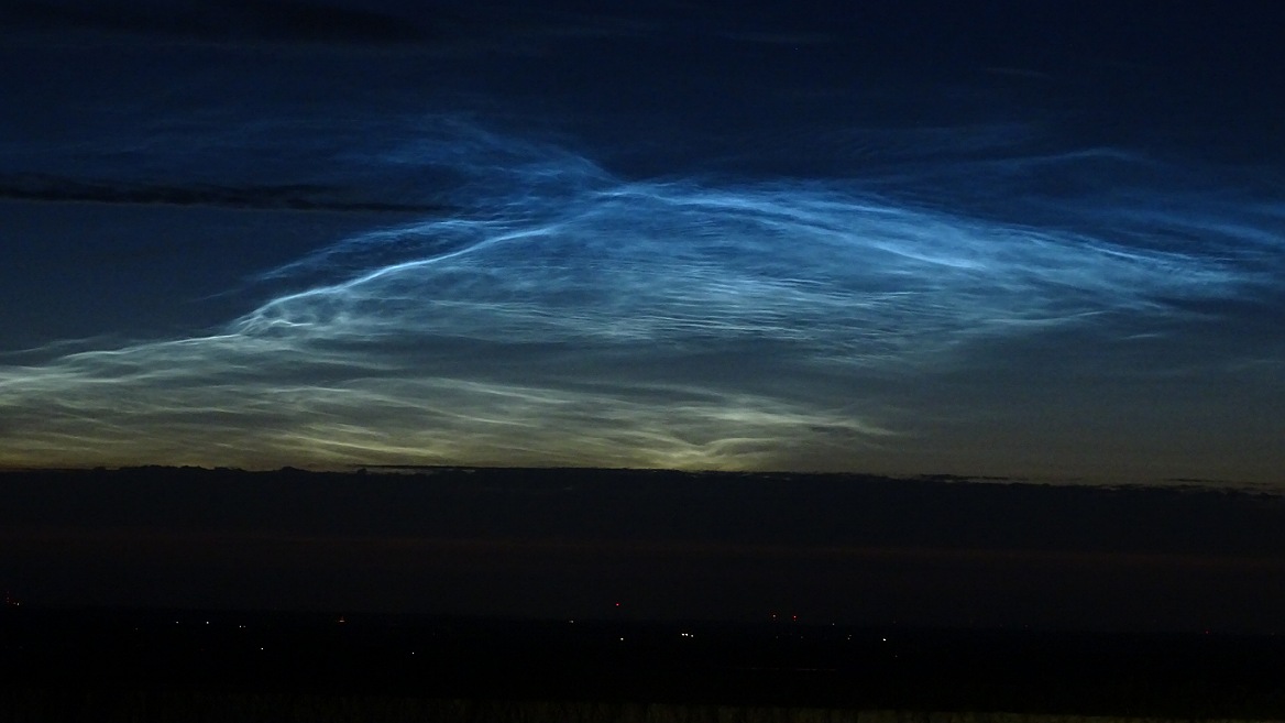 Da sich bei dem troposphärischen Gewölk nichts zu ändern schien, habe ich kurz nach Mitternacht eingepackt. Auf dem Rückweg hatte ich häufig die NLC im Blick, die auch aus dem Auto heraus gut zu sehen waren. Das Feld wurde aber immer blasser. Gegen halb Eins wurde es dann glaube ich durch normale Wolken verschluckt.