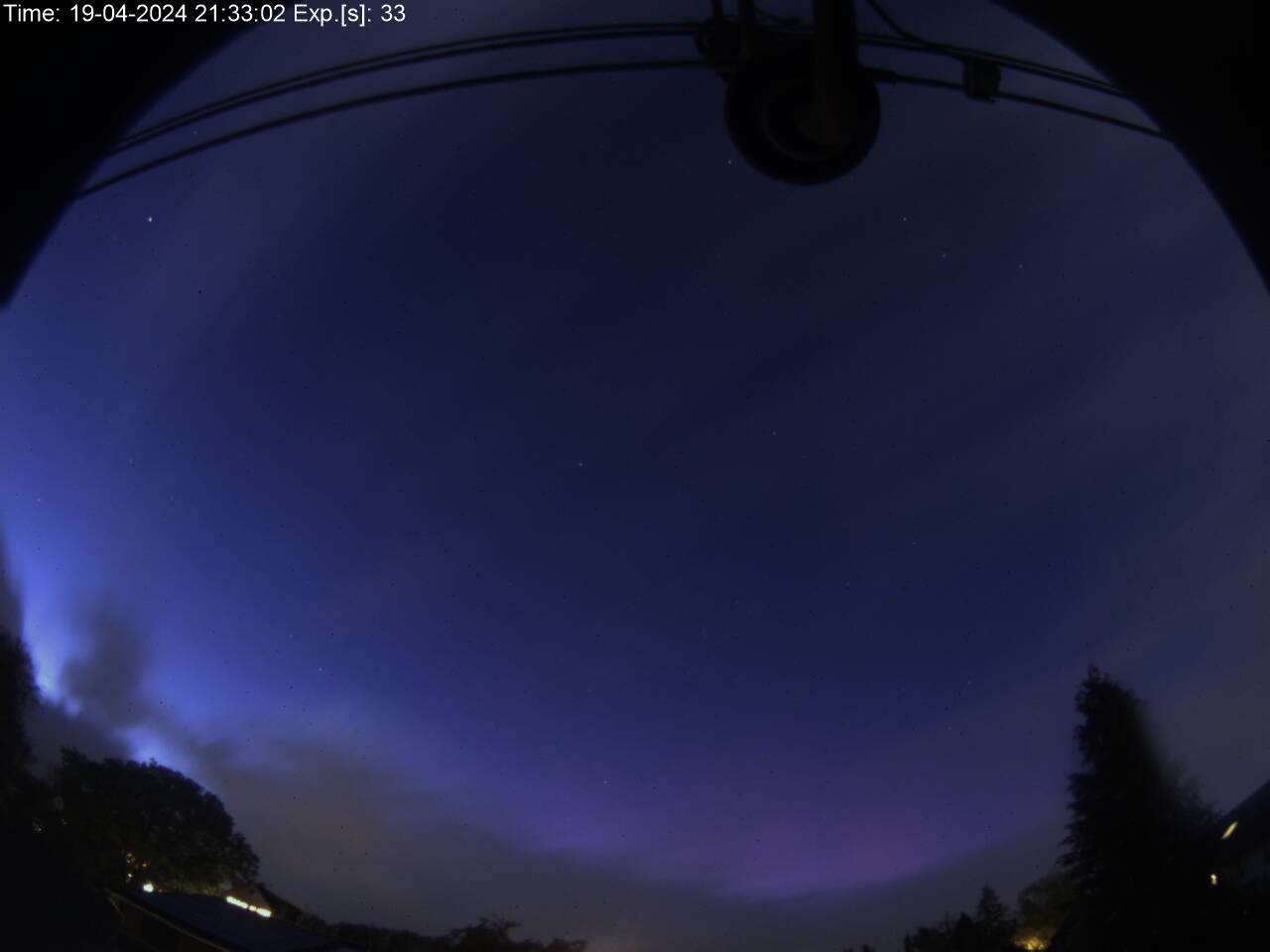 An der privaten Wetterstation Süderlügum (54° 52´19″ N/8° 54´45″ O) wurde am 19.04.2024 in der Zeit von 23.30 - 00.00 Uhr ein fotografisches Polarlicht aufgezeichnet.
